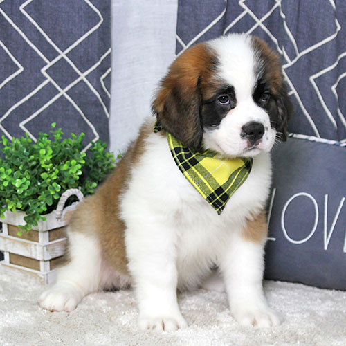 If correctly bred and raised, this breed is a gentle giant with a good disposition. Makes for a fine watchdog, but it should never be encouraged to do more than bark. Obedience training is essential for control and management of a breed this size. Beware of mass-produced stock, which make poor pets. To many people, the name Saint Bernard evokes images of romantic rescues from snowy slopes by a large dog with a brandy-filled barrel about its neck. In fact, the Saint Bernard lives up to legend: It has worked for centuries as a rescue dog in the Alps. During the 16th century, monks at a monastery near the Saint Bernard Pass in Switzerland used these dogs to patrol the area and warn of avalanches, and probably eventually to rescue the lost as well. The breed name, coined in the 19th century, refers to the Swiss pass, but the dog probably developed from earlier stock brought to Switzerland by the invading Roman army.