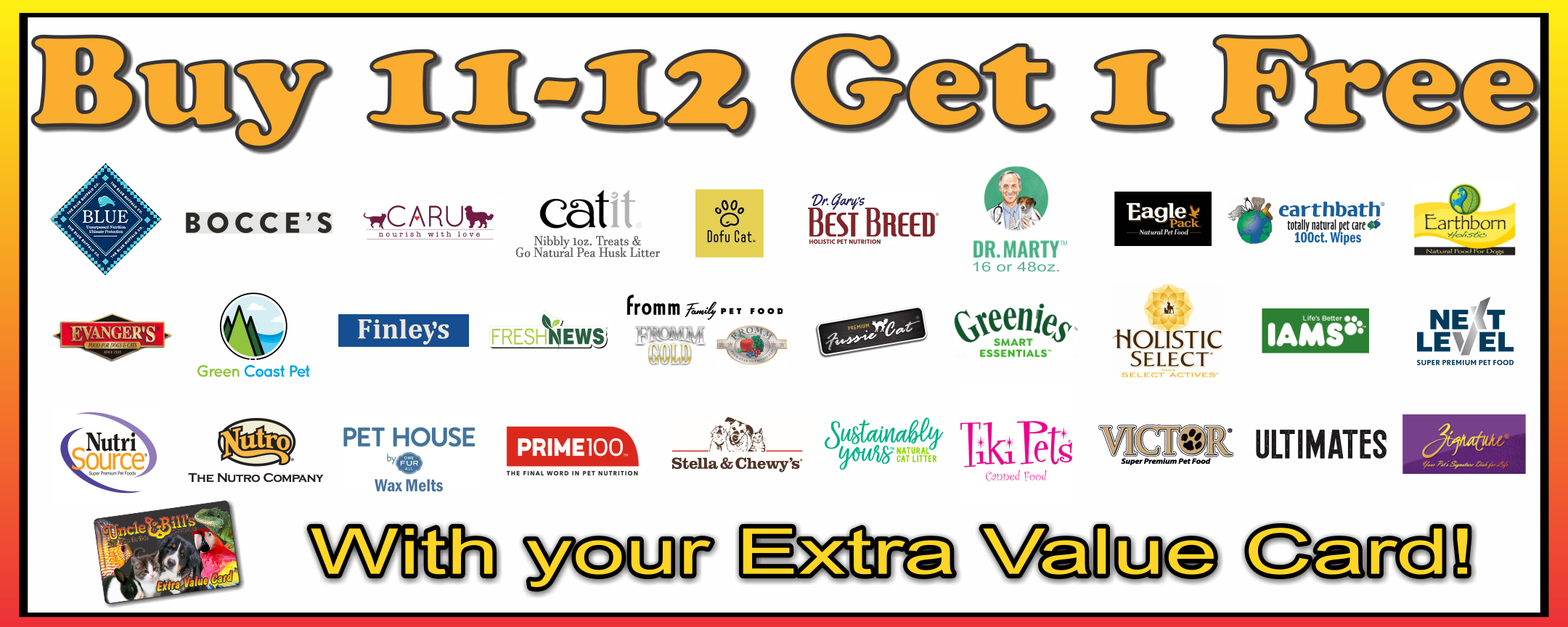 Start saving today by signing up for an Uncle Bill's Extra Value Card!